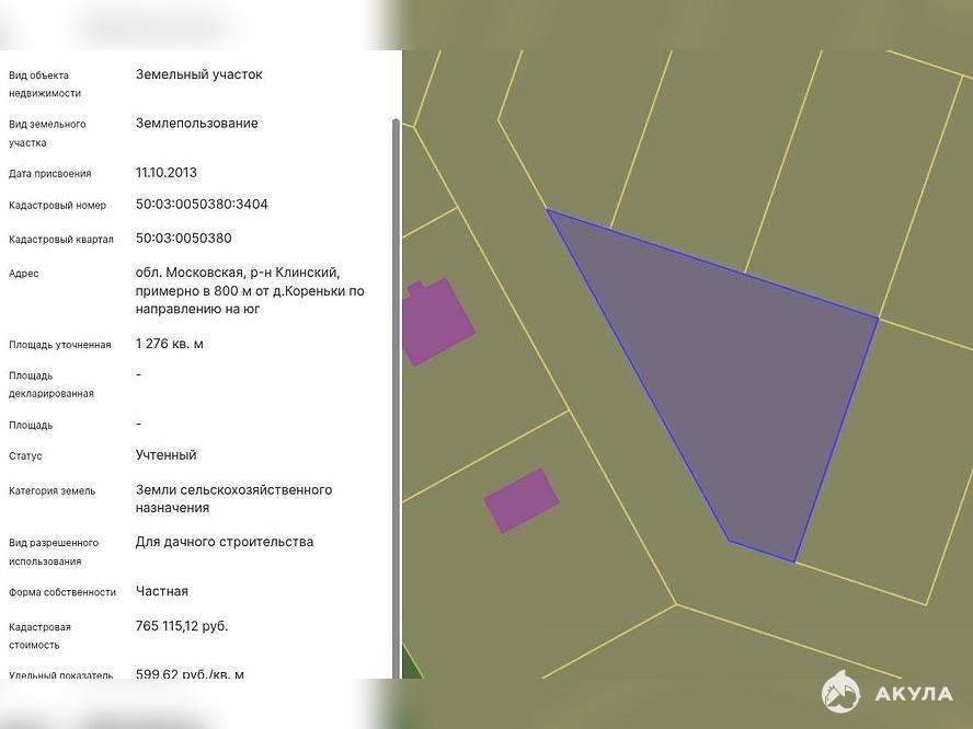 Имущество реализуется путем проведения торгов в форме аукциона в соответствии с Федеральным законом "О несостоятельности (банкротстве) " от 26.10.2002 №127-ФЗ. Земельный участок общей площадью 1276+/-24 кв.м. , расположенный по адресу: обл. Московская, р-н Клинский, примерно в 800 м от д. Кореньки по направлению на югкадастровый номер: 50: 03: 0050380: 3404категория: земли сельскохозяйственного назначениявид разрешенного использования: для дачного строительстваПримечание: на участке расположен незарегистрированный объект незавершенного строительства ориентировочной площадью 160 кв.м. координаты: 56.103347, 36.625484Прием заявок на электронной торговой площадке "МЭТС", задаток 10%. Помощь от Сбербанка - Агентский сервис по участию на торгах. Агент за Вас оформит документы, подаст заявку и примет участие на торгах. Специалисты Банка сопровождают процедуру участия в торгах "под ключ": - регистрация на ЭТП;- подача заявки;- торги;- сопровождение сделки купли-продажи. Все вопросы можно уточнить на сайте активов банка Portal-DA. Либо обращаться по телефону в будние дни с 09: 00 до 18: 00 по МСК.